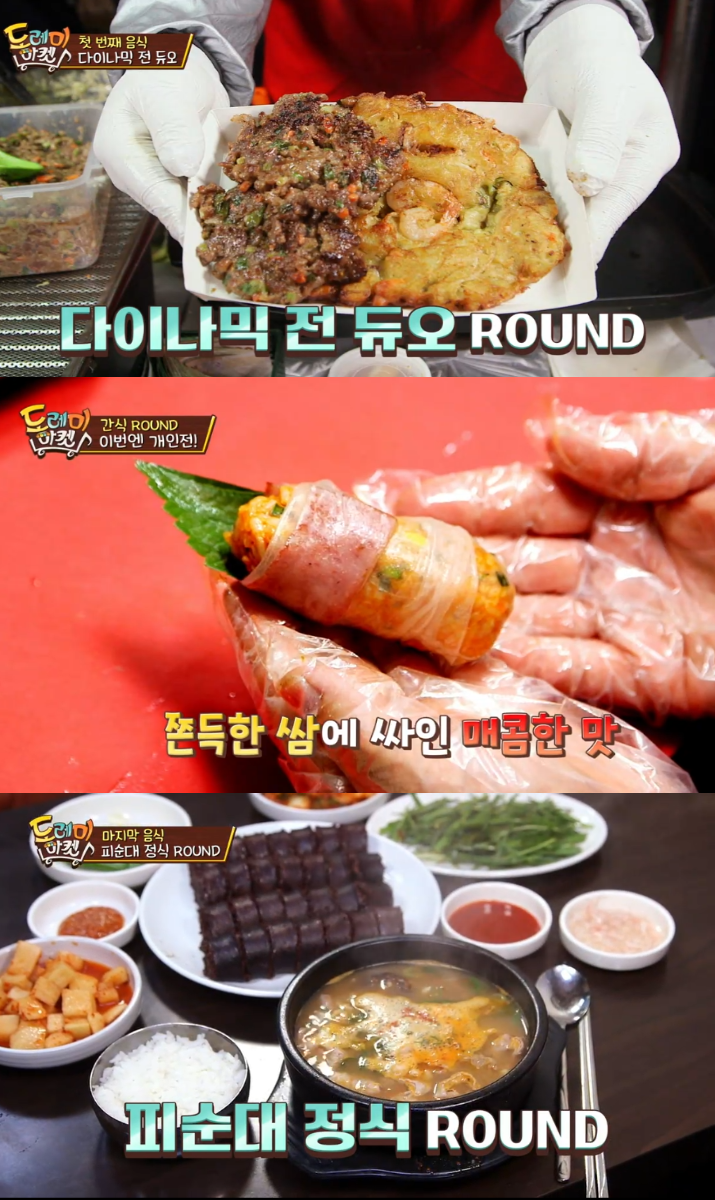 간식 라운드에서 소개된 음식은 바로 '시카고 피자'였습니다. 직접 만들어 발효시키는 도우에 다른 피자에 비해 치즈를 3배를 넣고 페퍼로니는 얹은 후 오븐에 구워냅니다. 그리고 특제 양념을 발라서 먹으면 먹자마자 입에서 폭발하는 치즈와 맛있는 토핑의 맛을 느낄 수 있습니다. 경기 평택시 중앙시장로 1-1 2층에 위치한 '사스콰치 피자'에서 판매하고 있고 연락처는 070-8181-2586이라고 합니다.