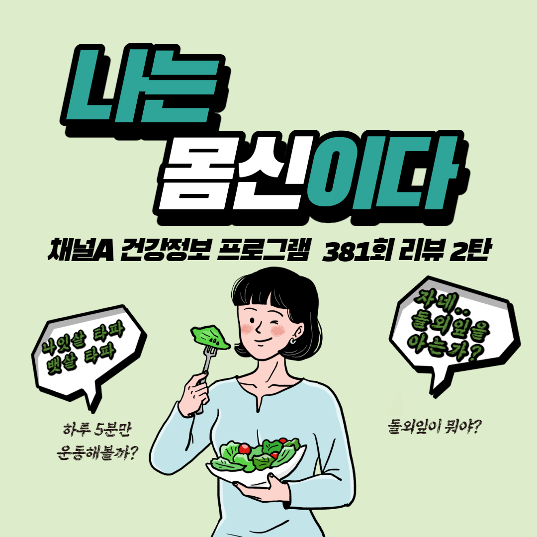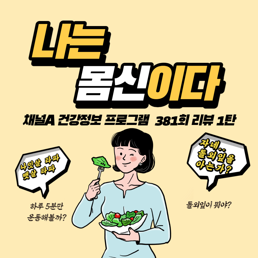 안녕하세요:) 오늘부터는 건강정보 방송인 채널A의 '나는 몸신이다'를 리뷰를 해볼까 합니다. 챙겨보지 못하신 분들이 어떤 내용이였고, 소개된 몸신들의 레시피가 생각나지 않으실 때 도움이