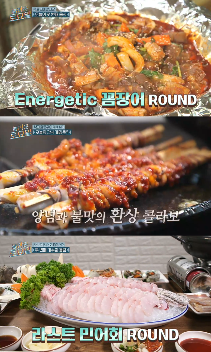 첫 번째로 소개된 음식은 식감의 제왕 꼼장어였습니다. 꼼장어와 함께 할 다양한 채소를 준비 후 특제 빨간 맛을 더한 수 꼼장어에 깊게 스며들 수 있게 버무린 다음 익힙니다. 다 익은 양념구이에 깻잎을 더하면 고소하 매콤한 꼼장어 양념구이가 완성됩니다. 볶음밥을 부르는 양념 맛집인 이곳은 '꼬미꼬미'라는 곳으로 전남 목포시 원산중앙로 41-1에 위치하며, 연락처는 061-278-9292입니다.